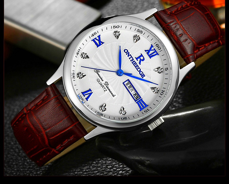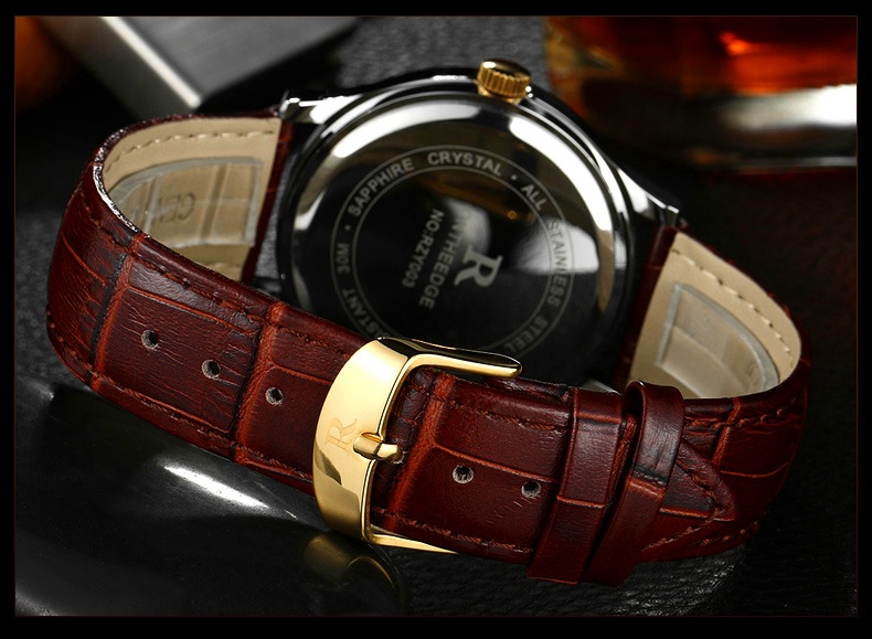 Stainless steel pin buckle, genuine leather straps material, alloyed case beautiful designed water resistant watch.